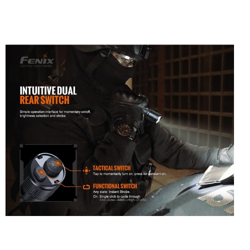 • Activación instantánea y luz estroboscópica con los interruptores traseros tácticos dobles.