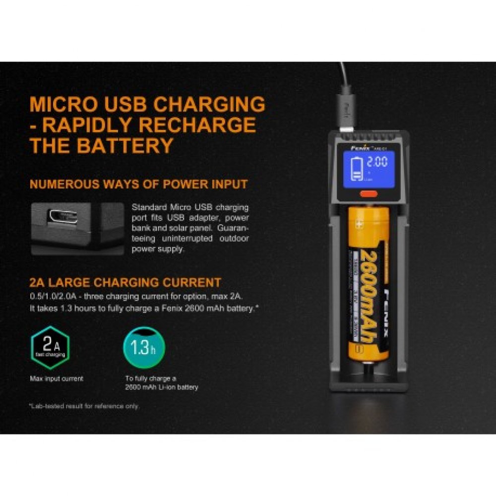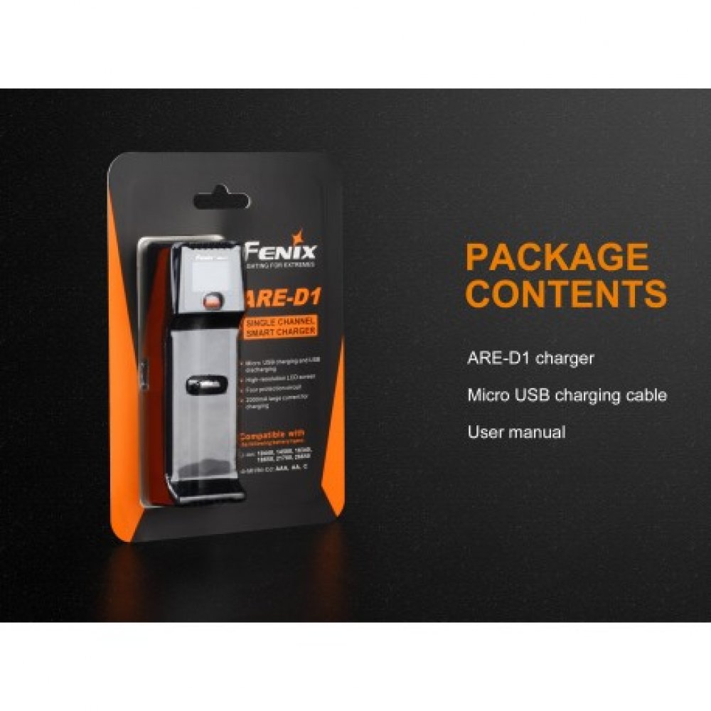 El Fenix ARE-D1 es un cargador inteligente de un solo canal que cuenta con la función de carga y descarga de USB micro.