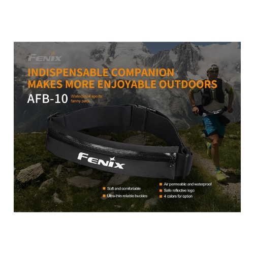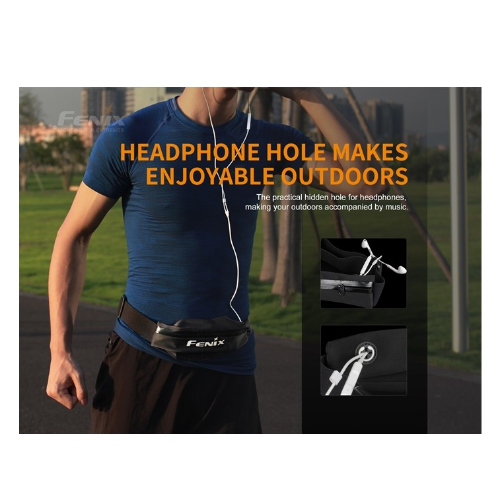 El Fenix AFB-10 es una riñonera deportiva impermeable con gran capacidad de almacenamiento. Cuenta con correa ajustable para la cintura y orificio para auriculares en forma de cruz, lo que hace que correr sea más agradable. Además, el logotipo reflectante garantiza una carrera nocturna más segura.
