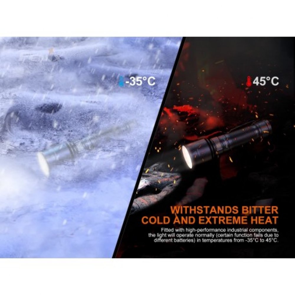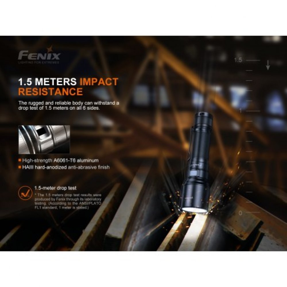 La linterna Fenix C7 es recargable de alto rendimiento para operaciones y mantenimiento industrial. Cuenta con carga USB tipo C con la batería de iones de litio recargable de 5000 mAh incluida. Ofrece una potencia de hasta 3000 lúmenes en potencia turbo mientras con una distancia de hasta 470 metros, y el tiempo de ejecución alcanza las 68 horas cuando se usa en potencia Eco. La base magnética es perfecta para usar con las manos libres, para sujetar la linterna a una superficie metálica cercana. La linterna LED Fenix C7 es una excelente herramienta que no te puedes perder, para ser un buen compañero en tipos de actividades al aire libre o para usar en tipos de lugares de trabajo industriales.