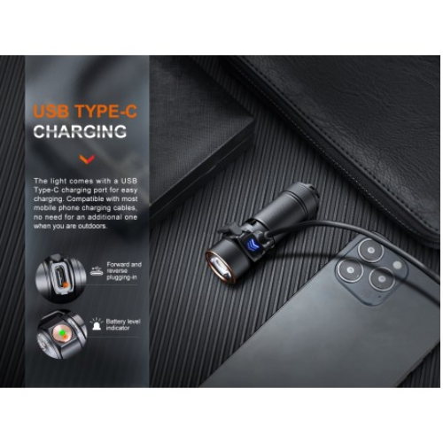 Linterna Fenix E18R V2.0 recargable con un alto rendimiento de diseño ultracompacto para llevar todos los días.