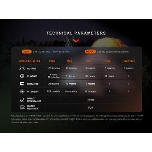 Linterna Fenix Modelo E-Spark de Emergencia Recargable con llavero