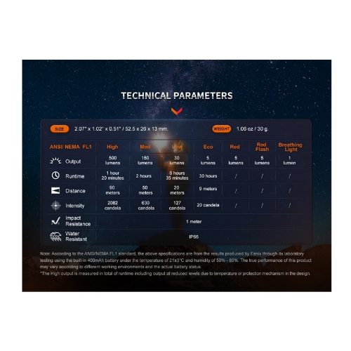 Linterna de llavero marca Fenix E03R V2.0 tiene un máximo de 500 lúmenes con un alcance de 90 metros. Resistente con una clasificación IP66 a prueba de salpicaduras y polvo. Sorprendentemente brillante para su pequeño tamaño, la E03R V2.0 se convertirá instantáneamente en una linterna de llavero favorita.