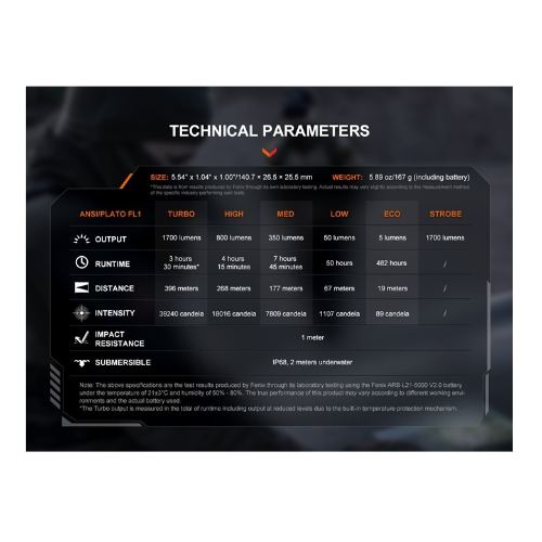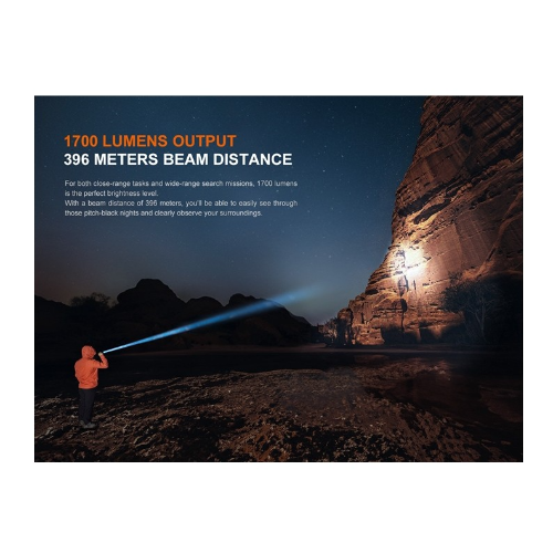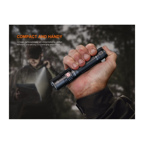 Linterna Marca Fenix Modelo PD36R V2.0 esta táctica recargable compacta. Esta euipada con un LED Luminus SFT40,que emite una salida máxima de 1700 lúmenes, con una impresionante distancia de haz de hasta 396 metros.