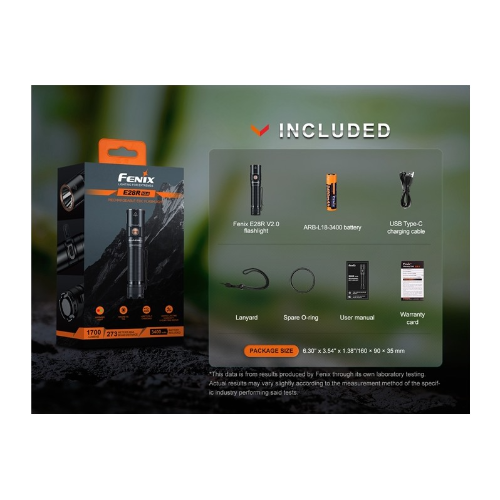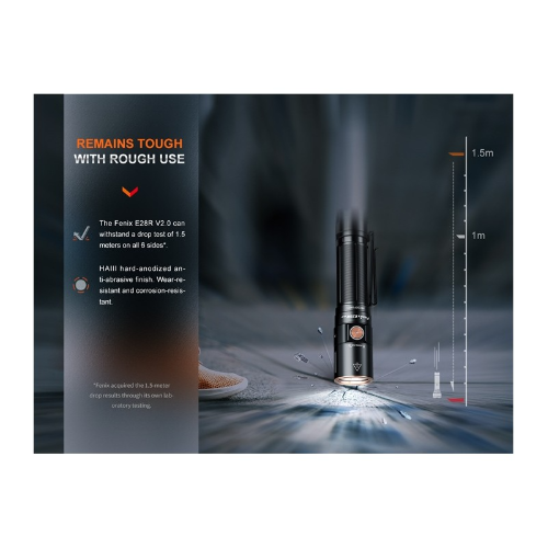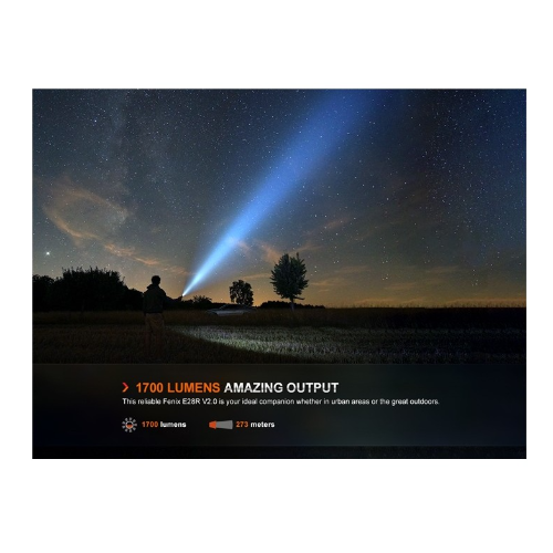Linterna Fenix ​​Modelo E28R V2.0, recargable muy esperada por los amantes de la EDC. Incluye  una batería de 3400 mAh,con una máxima de salida de 1700 lúmenes y una distancia máxima del haz de 273 metros.