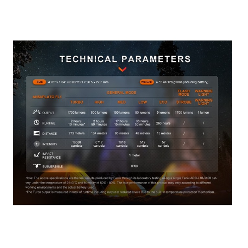 • Salida máxima de 1700 lúmenes y distancia máxima del haz de 273 metros.