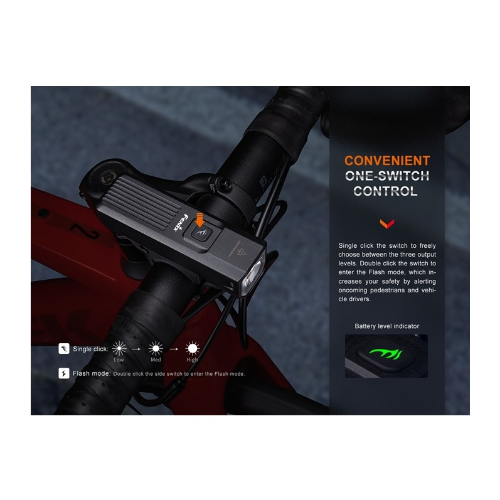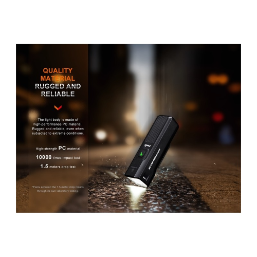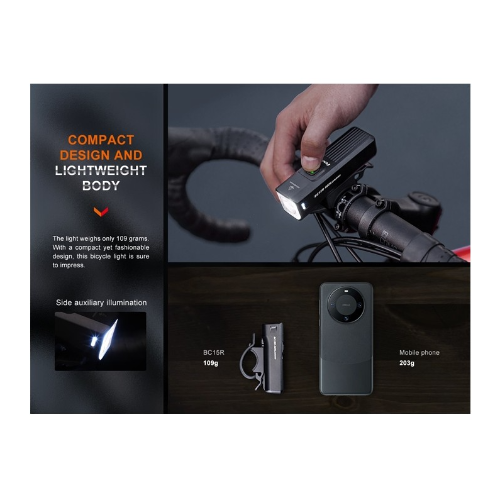 Esta Fenix BC15R es una luz para bicicleta urbana, liviana y elegante. Es compatible con un soporte para casco con luz de bicicleta o un soporte para luz de bicicleta con interfaz estándar GoPro para una conducción más segura. La innovadora línea de corte de fácula garantiza una circulación más segura al preservar la visibilidad de los peatones. Con un puerto de carga USB tipo C, la batería incorporada de 2600 mAh se puede recargar mediante el cable de carga USB tipo C incluido. El control con un solo interruptor, el indicador de nivel de batería y la protección con clasificación IP66 hacen del Fenix BC15R una ayuda indispensable para sus desplazamientos en bicicleta.