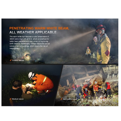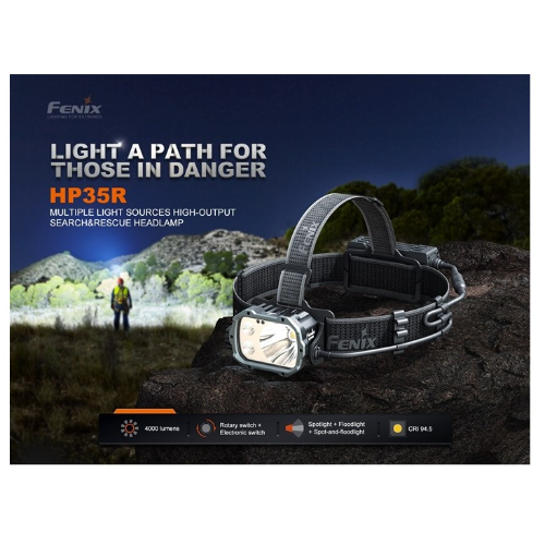 Se cambiar fácilmente entre tres modos y seleccionar entre cuatro niveles de brillo de cada modo mediante un interruptor giratorio y un interruptor electrónico. El faro presenta una combinación de foco, reflector y foco y reflector, mientras que la caja de la batería incluye una luz roja para alertar y preservar la visión nocturna. La excelente funcionalidad del HP35R lo hace ideal para búsqueda y rescate, patrullaje, espeleología y otras operaciones al aire libre de alta intensidad.
