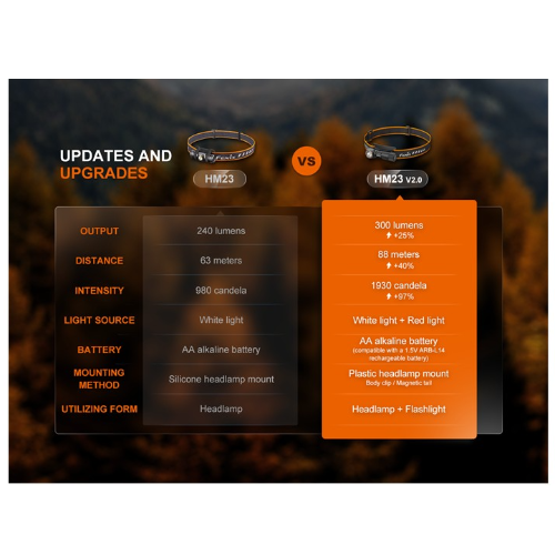Esta linterna frontal Fenix HM23 V2.0 es frontal ligera y polivalente muy fiable. Viene con una pila AA de fácil ensamblaje, que ofrece una potencia máxima de 300 lúmenes y una autonomía máxima de hasta 100 horas.