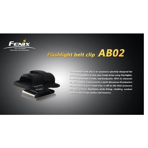 Este Clip Fenix porta linterna para cinturón AB02, con sistema de clip rotatorio el cual esta fabricado de acero inoxidable, por lo que es mas resistente a las ralladuras.