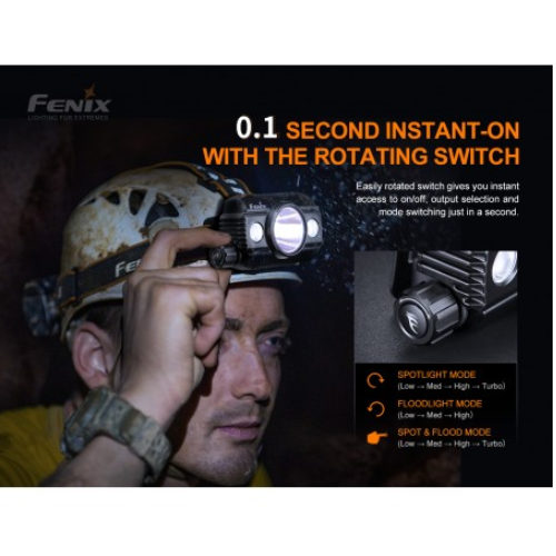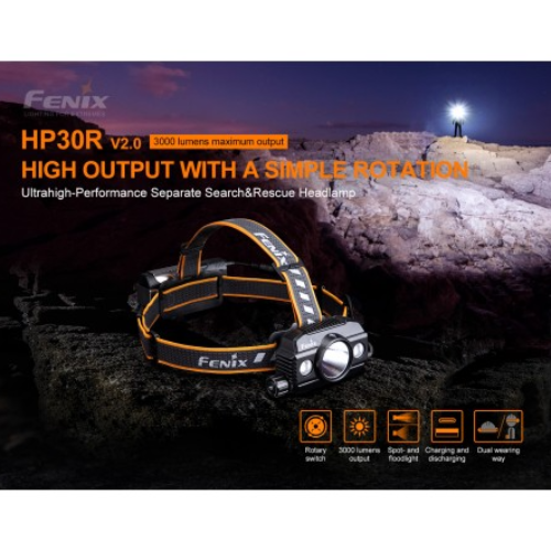 La versión mejorada Fenix HP30R V2.0 es una linterna frontal independiente recargable de alto rendimiento. La energía proviene de las dos baterías recargables 21700 incluidas que permiten un tiempo de funcionamiento prolongado en un estuche fácil de recargar con la capacidad única de cargar también sus otros dispositivos digitales como un banco de energía. Los 3 LED únicos se pueden usar a la vez para dispersar unos increíbles 3000 lúmenes que alcanzan más de 270 metros. La versatilidad de esta linterna frontal comienza con la caja de la batería que se lleva con el cinturón que permite un diseño liviano y cómodo en la cabeza. La capacidad única de utilizar niveles de inundación y puntuales a la vez le proporciona una luz adaptable. El HP30R V2.0 puede ser una herramienta que salva vidas para los profesionales de búsqueda y rescate.