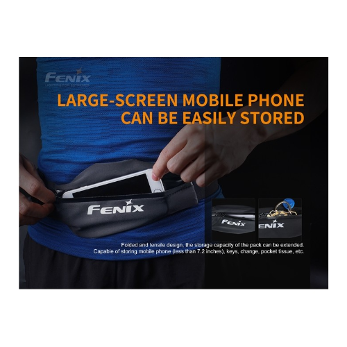 El Fenix AFB-10 es una riñonera deportiva impermeable con gran capacidad de almacenamiento. Cuenta con correa ajustable para la cintura y orificio para auriculares en forma de cruz, lo que hace que correr sea más agradable. Además, el logotipo reflectante garantiza una carrera nocturna más segura.