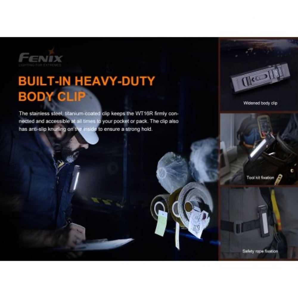 Cuenta con función de carga con la batería de polímero de litio de 2000 mAh incorporada. La luz de trabajo LED Fenix WT16R se convertirá en su herramienta esencial para usar en la casa o en el campo, especialmente para tipos de lugares de trabajo industriales.
