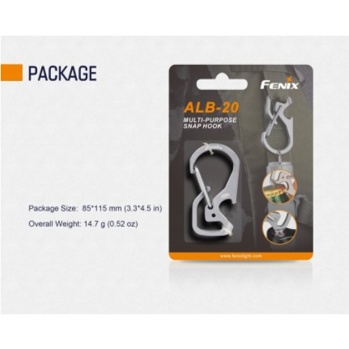 Este Mosqueton ALB-20 de Fenix, esta fabricado en itanio TC4, la superficie está pulida finamente con chorro de arena, para darle un aspecto mate y una textura delicada.
