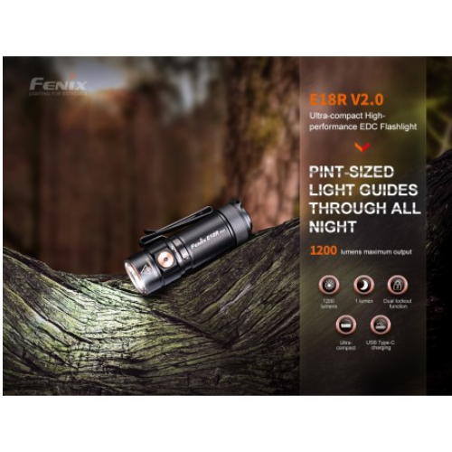 Linterna Fenix E18R V2.0 recargable con un alto rendimiento de diseño ultracompacto para llevar todos los días.