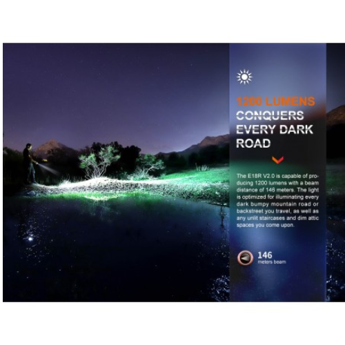 Linterna Fénix Recargable E-18R V2.0 con 1200 Lumenes