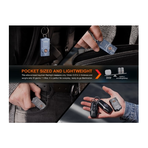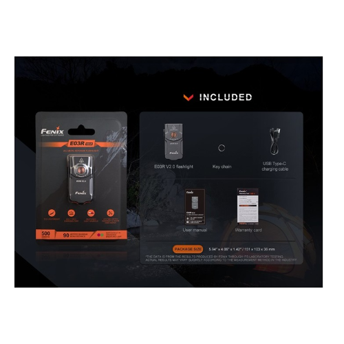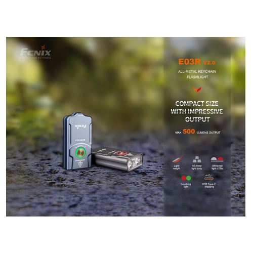 Linterna de llavero marca Fenix E03R V2.0 tiene un máximo de 500 lúmenes con un alcance de 90 metros. Resistente con una clasificación IP66 a prueba de salpicaduras y polvo. Sorprendentemente brillante para su pequeño tamaño, la E03R V2.0 se convertirá instantáneamente en una linterna de llavero favorita.