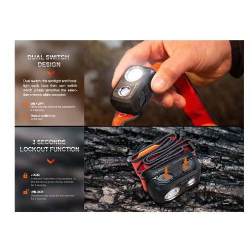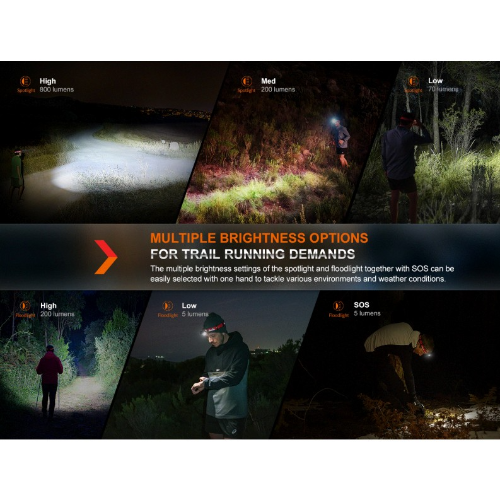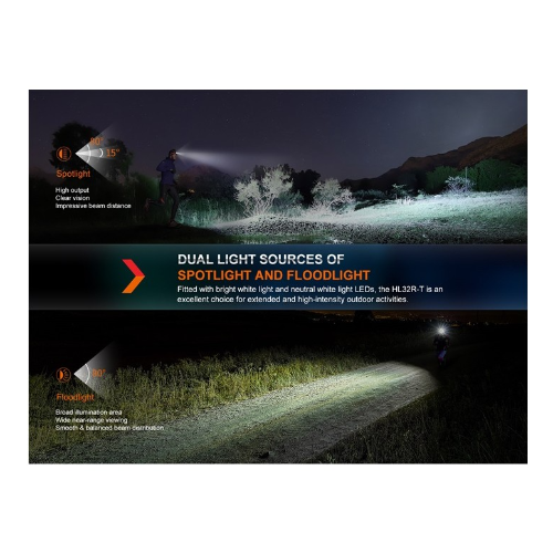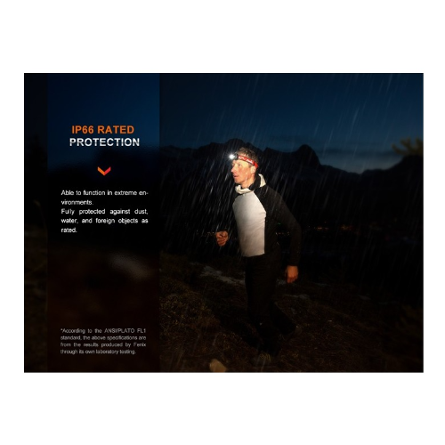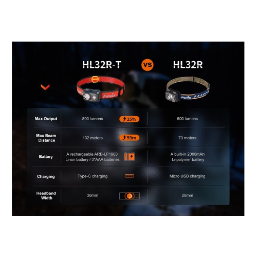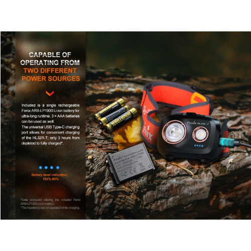 Linterna Fenix modelo HL32R-T frontal de alto rendimiento para trail running, que trae Incluida una baterías ARB-LP1900 y compatible con 3 baterías AAA. Con un impresionante tiempo de ejecución de hasta 150 horas. Luz concentrada y luz difunminada controladas por separado por dos interruptores, la distancia máxima del haz de 132 metros, la protección con clasificación IP66 y el cuerpo liviano de magnesio hacen que el Fenix HL32R-T sea una opción sofisticada para diversos tipos de actividades al aire libre: montañismo, trekking. etc.