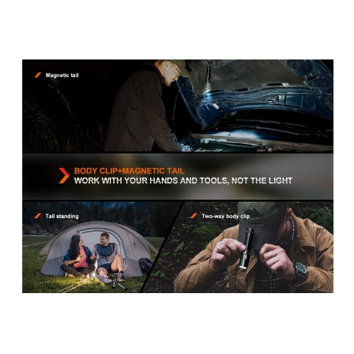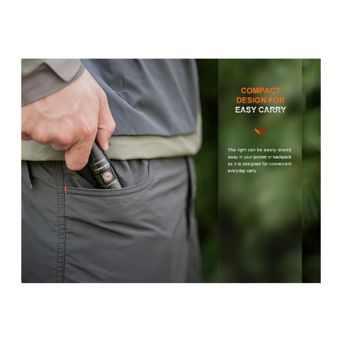 Sus características adicionales incluyen una cola magnética, un clip de cuerpo bidireccional y protección con clasificación IP68. Compacto y resistente, el E28R V2.0 es una excelente herramienta de iluminación para desplazamientos diarios, campamentos y caminatas.