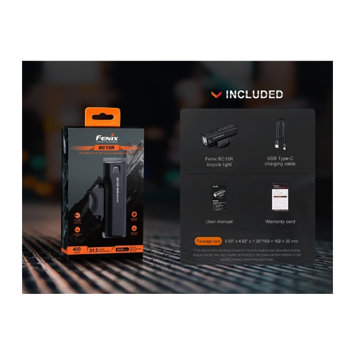 Esta Fenix BC15R es una luz para bicicleta urbana, liviana y elegante. Es compatible con un soporte para casco con luz de bicicleta o un soporte para luz de bicicleta con interfaz estándar GoPro para una conducción más segura. La innovadora línea de corte de fácula garantiza una circulación más segura al preservar la visibilidad de los peatones. Con un puerto de carga USB tipo C, la batería incorporada de 2600 mAh se puede recargar mediante el cable de carga USB tipo C incluido. El control con un solo interruptor, el indicador de nivel de batería y la protección con clasificación IP66 hacen del Fenix BC15R una ayuda indispensable para sus desplazamientos en bicicleta.