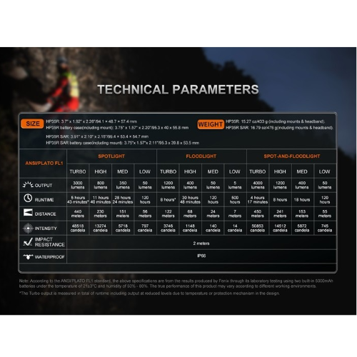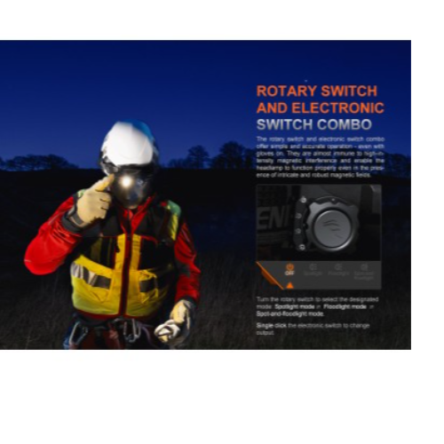Se cambiar fácilmente entre tres modos y seleccionar entre cuatro niveles de brillo de cada modo mediante un interruptor giratorio y un interruptor electrónico. El faro presenta una combinación de foco, reflector y foco y reflector, mientras que la caja de la batería incluye una luz roja para alertar y preservar la visión nocturna. La excelente funcionalidad del HP35R lo hace ideal para búsqueda y rescate, patrullaje, espeleología y otras operaciones al aire libre de alta intensidad.
