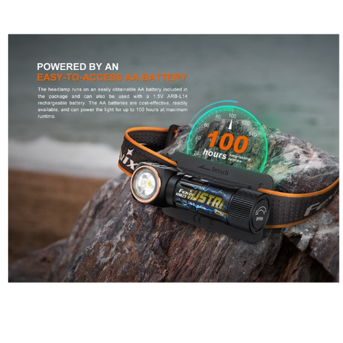 Esta linterna frontal Fenix HM23 V2.0 es frontal ligera y polivalente muy fiable. Viene con una pila AA de fácil ensamblaje, que ofrece una potencia máxima de 300 lúmenes y una autonomía máxima de hasta 100 horas.