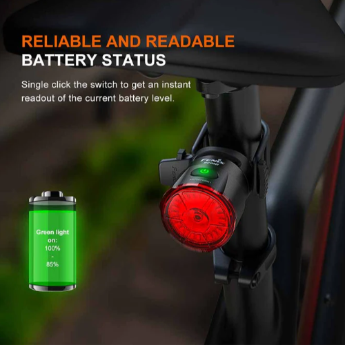 Linterna Marca Fenix Modelo BC06R es una potente luz trasera para bicicleta recargable y ultracompacta diseñada para mejorar tu seguridad en los trayectos, ya sea en Ciudad o Carretera. con la función de detección inteligente de frenos aumenta automáticamente el brillo a 90 lúmenes cuando se detecta el frenado para una mayor visibilidad. La luz trasera BC06R, que se monta fácilmente en el poste del asiento o en los rieles del sillín de tu bicicleta, presenta una resistencia a los impactos de hasta 1,5 metros, múltiples modos de iluminación y un funcionamiento intuitivo con un solo interruptor. Compacta y fiable, es la luz trasera ideal para cualquier ciclista, ya que garantiza la visibilidad en cualquier condición.